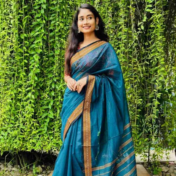 অরজিনাল সেমী মোসলিন বাটিক সিল্কের শাড়ি ডিজিটাল প্রিন্ট কাজ করা